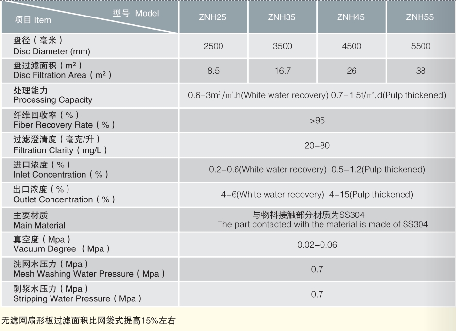 多盤式真空過濾機ZNH系列多盤式真空過濾機主要由槽體、上罩、主軸、濾盤、分配閥、洗網(wǎng)裝置、剝漿裝置、沖水管、出料裝置、小端密封、主傳動裝置及控制系統(tǒng)等組成,用于紙機抄紙過程中產(chǎn)生的白水回收和制漿過程中的漿料濃縮。其中,ZNH系列多盤式真空過濾機是公司的拳頭產(chǎn)品,具有50多年的生產(chǎn)制造經(jīng)驗,擁有數(shù)十個規(guī)格品種,盤徑實現(xiàn)2.5m、3.5m、4.5m、5.5m多尺寸供應(yīng),是國內(nèi)唯一實現(xiàn)可全尺寸定制的生產(chǎn)廠家,可以滿足客戶對于不同工藝的需求。經(jīng)過多年的發(fā)展與改進,目前已完全具備替代同類進口設(shè)備的水平,處于國內(nèi)領(lǐng)先地位。