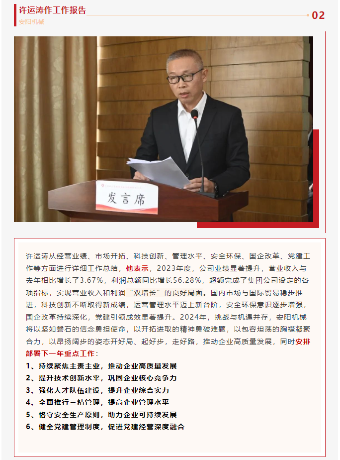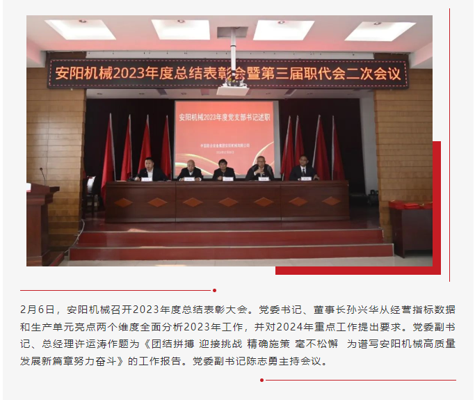 安陽(yáng)機(jī)械召開(kāi)2023年度工作總結(jié)表彰大會(huì)暨第三屆職代會(huì)二次會(huì)議