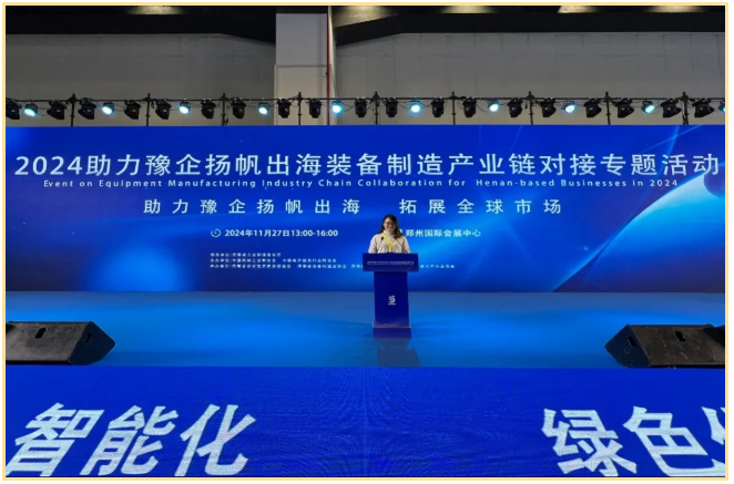 11月27日,由河南省工業(yè)和信息廳主辦的"2024助力豫企揚(yáng)帆出海裝備制造產(chǎn)業(yè)鏈對(duì)接專(zhuān)題活動(dòng)"在鄭州國(guó)際會(huì)展中心隆重舉行。此次活動(dòng)組織了來(lái)自美國(guó)、德國(guó)、俄羅斯、沙特、英國(guó)、日本、印度、澳大利亞、加拿大、尼日和亞等 100 多個(gè)國(guó)家的 1000多家企業(yè)采購(gòu)商,安陽(yáng)機(jī)械應(yīng)邀參加此次盛會(huì)。