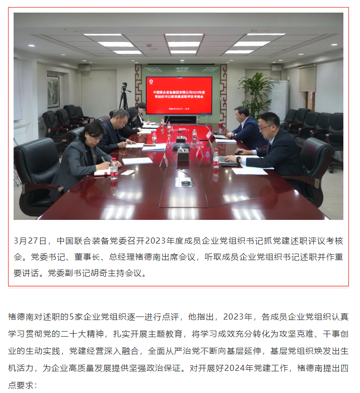 中國聯(lián)合裝備黨委召開2023年度成員企業(yè)黨組織書記抓黨建述職評議考核會(huì)